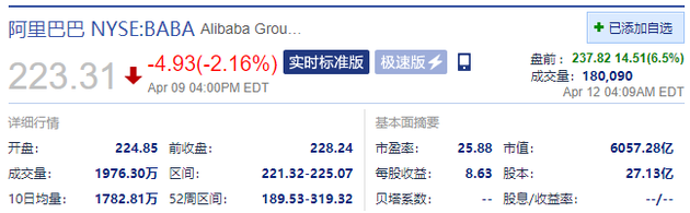 新浪科技讯 4月12日下午消息,阿里巴巴盘前涨近7%,阿里CEO张勇表示预计反垄断处罚不会造成重大影响;此外多家投行表示公司配资,处罚落地后阿里长期基本面稳定,罚款影响将逐渐消化。