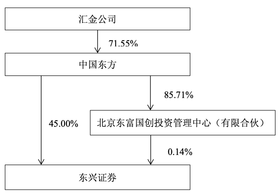 公告还披露,截至本报告书签署日,中国东方直接持有东兴证券14.55亿股股份,并通过其控制的北京东富国创投资管理中心(有限合伙)间接持有453.95万股股份,直接和间接合计持有东兴证券14.59亿股股份,占东兴证券已发行股份总数的45.14%。上述股份不存在质押、司法冻结等权利限制的情况。